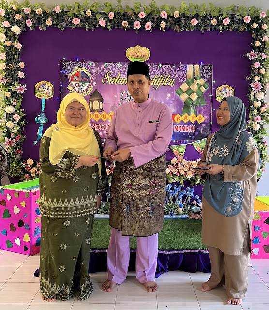 PENYAMPAIAN SUMBANGAN DUIT RAYA DARIPADA PIHAK SEKOLAH KEPADA MURID-MURID BERAGAMA ISLAM.